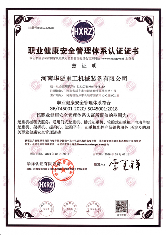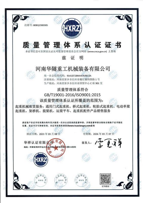 河南華隧重工機械裝備有限公司主要從事通用門式起重機、橋式起重機、電動單梁起重機,輪胎式起重機、架橋機、提梁機、遠梁平車、鋼絲繩電動萌蘆、卷揚機、起重配件制造、銷售:起重機械租賃、安裝和維修,起重設備園收,機械設備維修,鋼結構工程承包,橋梁工程及技術咨淘服務,銷售五金制品、機電設備:建設工程監(jiān)理,建設工程設計,各類工程建設活動,建筑勞務分包,建筑物折除作業(yè),施工作業(yè),工程管理服務,土石方工程施工,裝如發(fā)運。  公司已通過IS0國際質量、環(huán)境、健康與安全三合一標準認證,特種設備制造許可證和特種設備安裝改造維修許可證。擁有完熟的質量管理體系。嚴格的管理制度,強大的生產能力和先進的檢測手段,在保證產品質量的同時,也具備了極強的市場競爭力。  公司堅持科技創(chuàng)新為理念,產品質量為核心,注重信譽,建立了減信可靠、快捷、思速。便利周到的售后服務網絡。  我們擁有的技術專家和技術服務隊伍為客戶提供充善的售前技術支持和全天候的售后服務體系,讓您無后顧之憂,享受一站式的超值服務。  “華隧重工,伴您成功“是華隧重工永遠的宗指,真被的希望與各界朋友攜手并進。共創(chuàng)輝準!